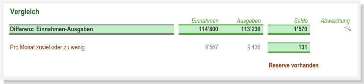 Einnahmen / Ausgaben Berechnung Komplette Daten im Vergleich und Berechnung ob das geplante Budget genügt oder ein Manko aufweist. |